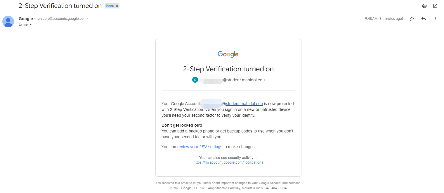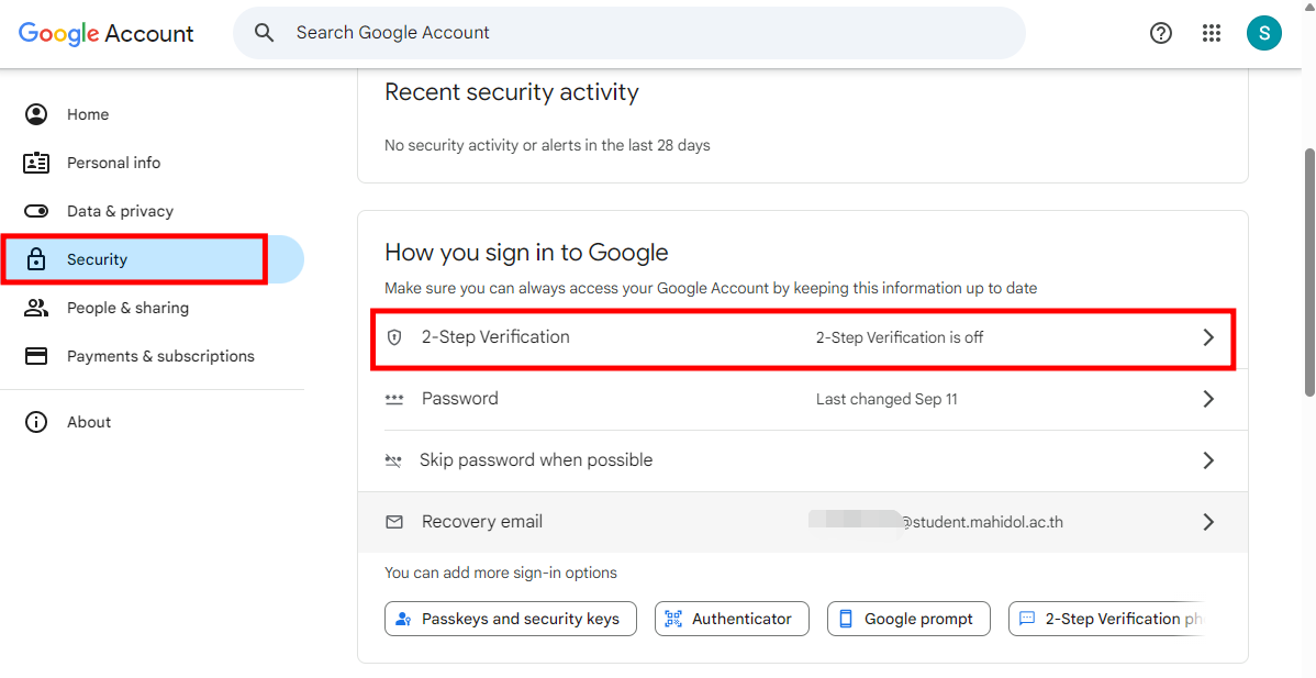 ขั้นตอนการเปิด 2-Step Verification บน Google Workspace ของมหาวิทยาลัย