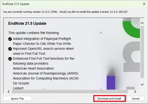 การอัพเดทเวอร์ชั่นโปรแกรม Endnote สำหรับ Windows