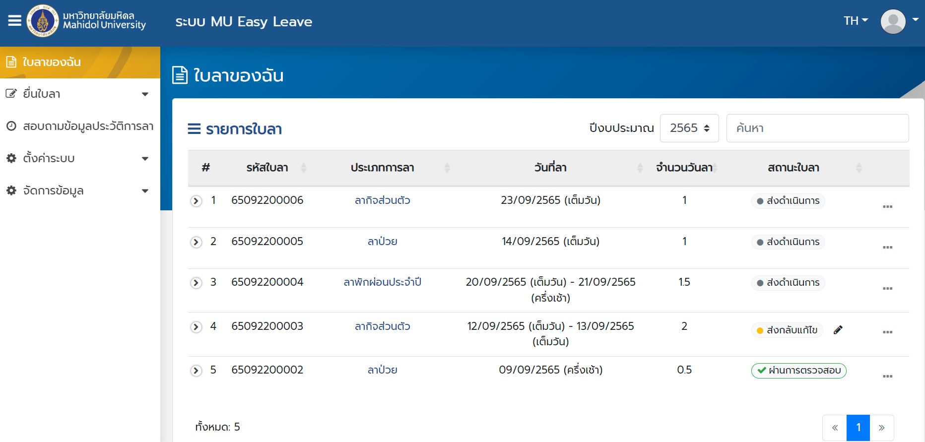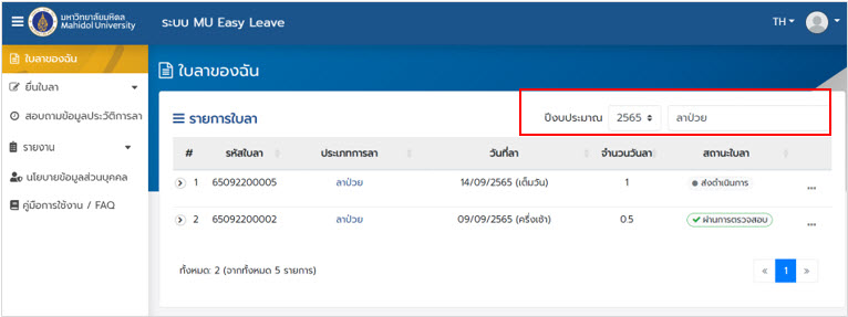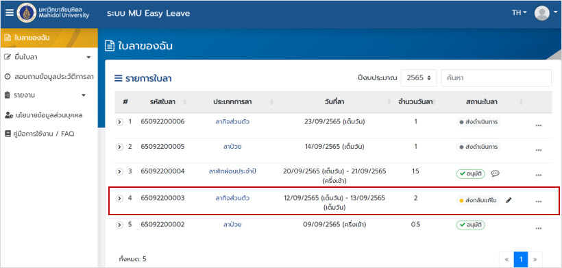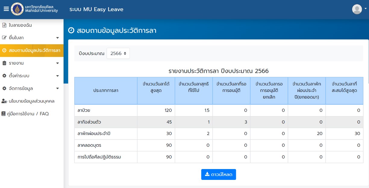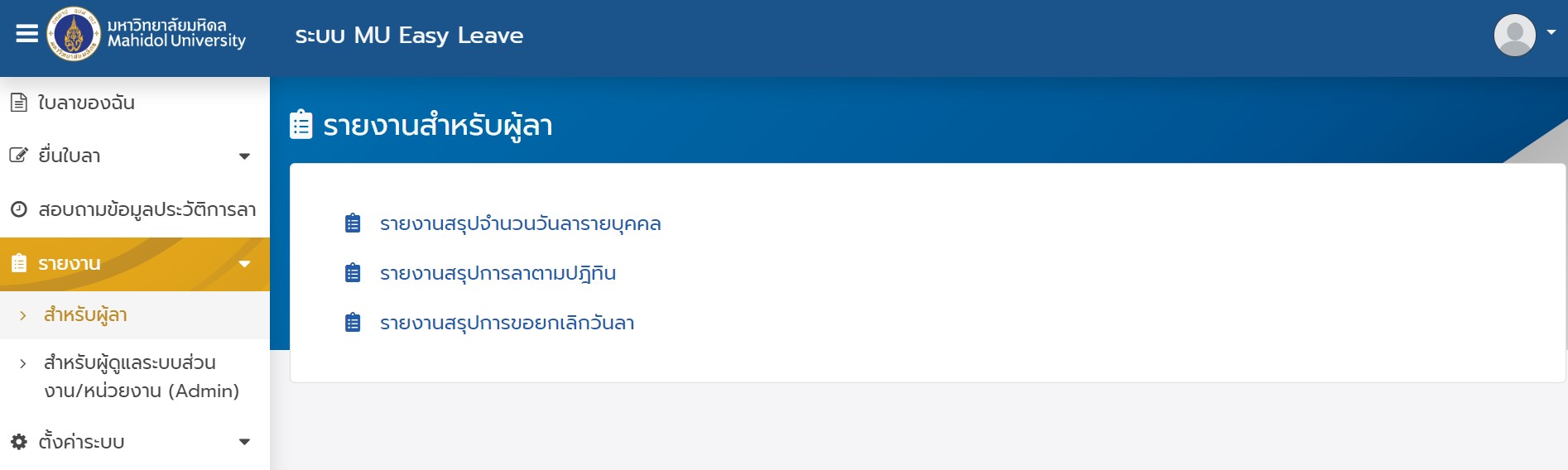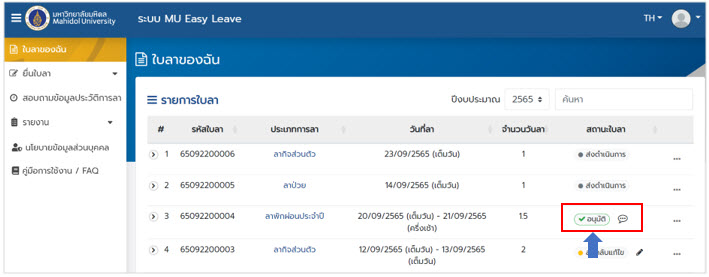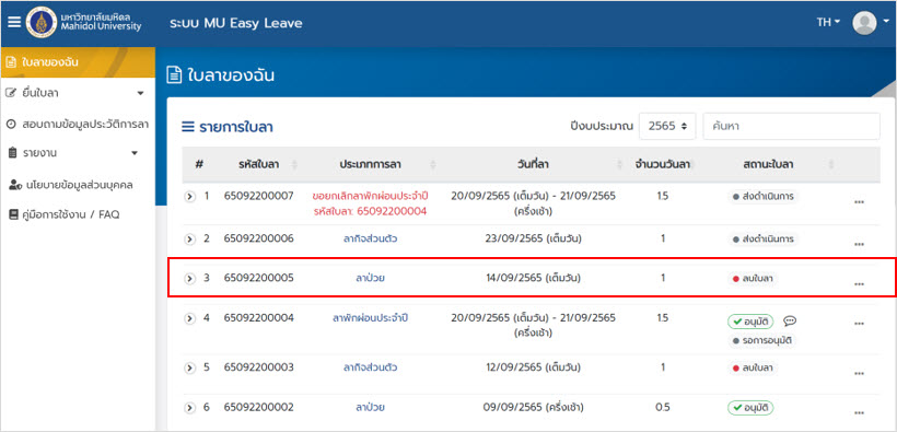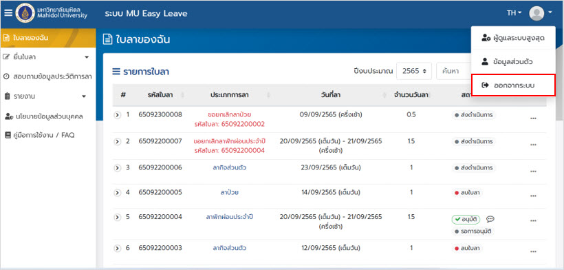 ระบบลา มหาวิทยาลัยมหิดล (MU Easy Leave System) สำหรับผู้ลา