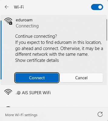 การเชื่อมต่อเครือข่าย eduroam