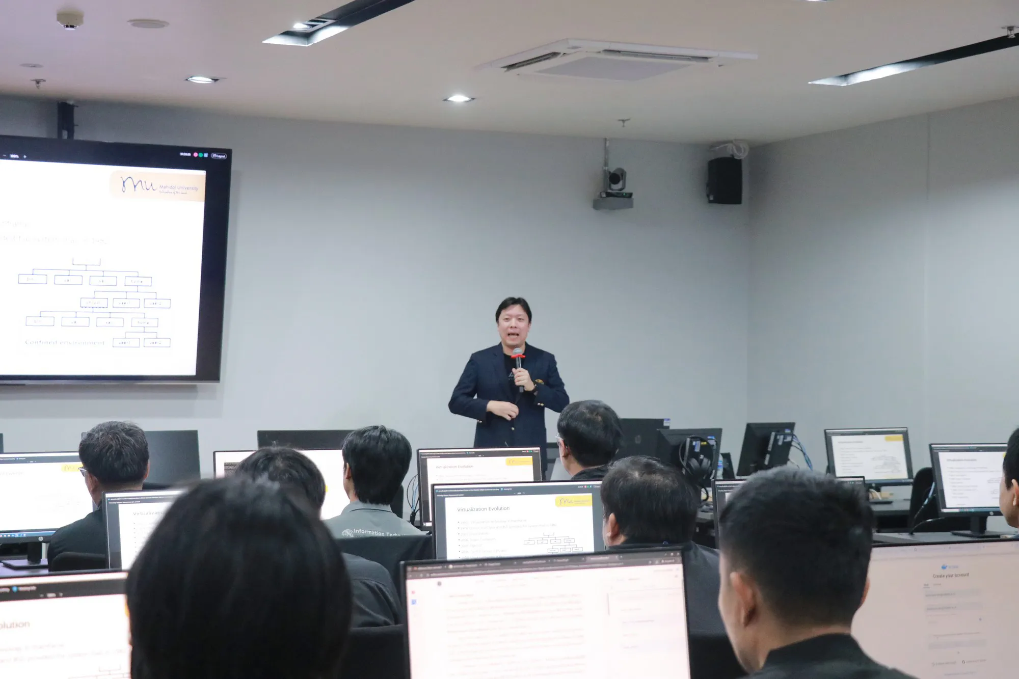 การอบรมในครั้งนี้ได้รับเกียรติจากวิทยากรผู้เชี่ยวชาญ อาจารย์ ดร. อิทธิพล รัศมีโรจน์ ผู้ช่วยคณบดีฝ่ายโครงสร้างพื้นฐานและเทคโนโลยี อาจารย์ประจำกลุ่มวิชาวิทยาการคอมพิวเตอร์ คณะเทคโนโลยีสารสนเทศและการสื่อสาร มหาวิทยาลัยมหิดล โดยจัดอบรมในรูปแบบ Hybrid ณ ห้องอบรม (Training Room) กองเทคโนโลยีสารสนเทศ ชั้น 1 อาคารสำนักงานอธิการบดี มหาวิทยาลัยมหิดล ศาลายา และผ่านระบบ Webex Meeting สำหรับผู้เข้าร่วมออนไลน์