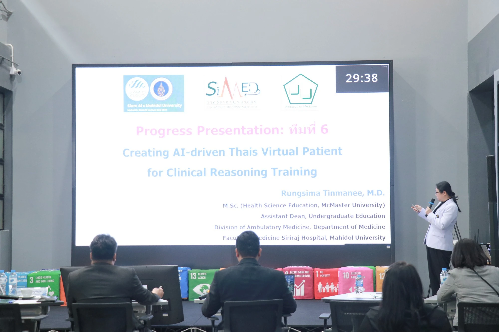 กิจกรรม “Progress Presentation” โครงการ Mahidol x Siam AI Venture Lab 2025 Phase 2: Mentorship & Acceleration Program” ในรอบของการนำเสนอความก้าวหน้าของโครงการ และ Workshop จัดขึ้นระหว่างวันที่ 22-23 ธันวาคม 2568 เป็นการร่วมมือระหว่างสถาบันการศึกษาและภาคเอกชน เพื่อค้นหานวัตกรรมด้านปัญญาประดิษฐ์ (AI) ทางการแพทย์และสุขภาพของมหาวิทยาลัย และนำไปต่อยอดสู่การเป็นธุรกิจสตาร์ทอัพต่อไป